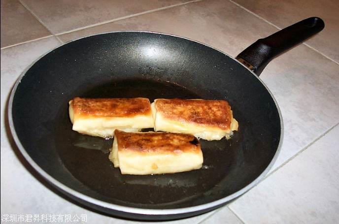 由于其優異的化學穩定性,PTFE還被用于制作儲存和運輸性質活潑或有腐蝕性化學物質的容器和管道。當然,PTFE日常的應用是不粘鍋以及廚具模型的不粘涂層,PTFE還被下圖所示為涂了PTFE的不粘鍋: